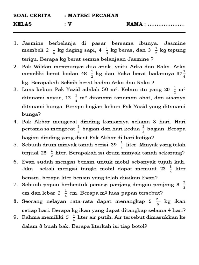 Soal Cerita Pecahan Kelas 4 / Soal Cerita Operasi Hitung Pecahan Jawaban Kependidikan Com / Sebanyak 30% adalah buku cerita.